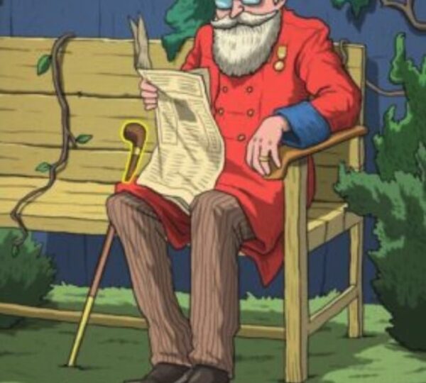 Our elderly subject exudes calm and focus, absorbed in reading a newspaper, seemingly unaware that an item dear to him has mysteriously disappeared from his possession, presenting the perfect scenario for a hidden object challenge.